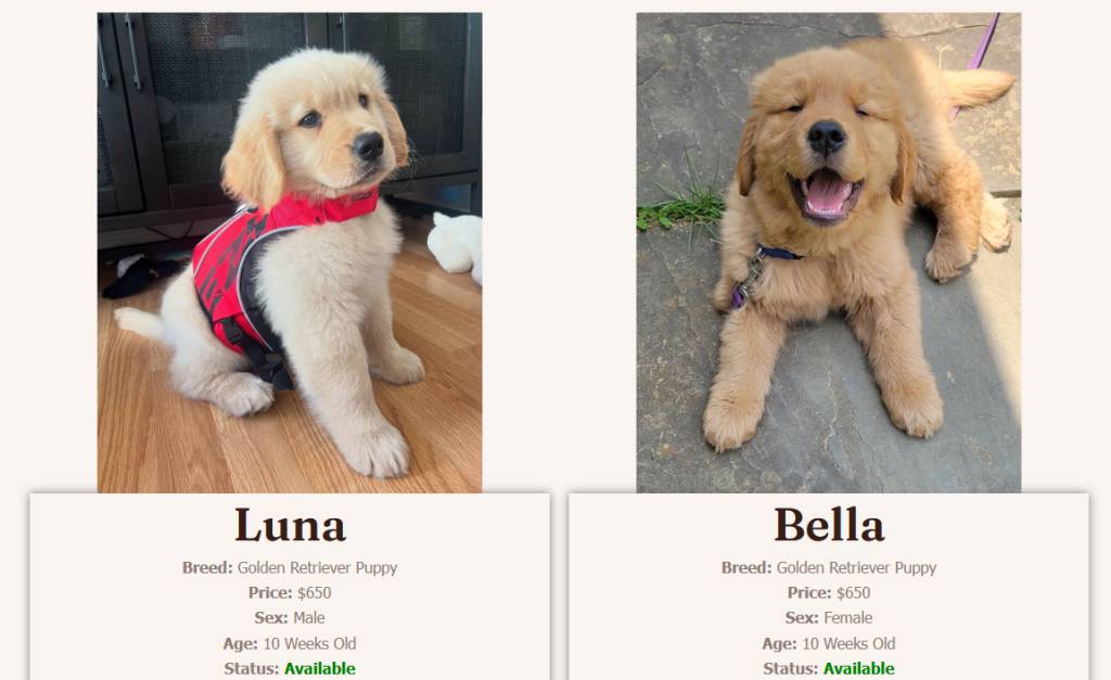 Scammers have setup this fake puppy breeder website to lure potential buyers into purchasing non-existent puppies. They use adorable puppy pictures stolen from other breeders and low pricing to trick people into making payments, only to later disappear.
