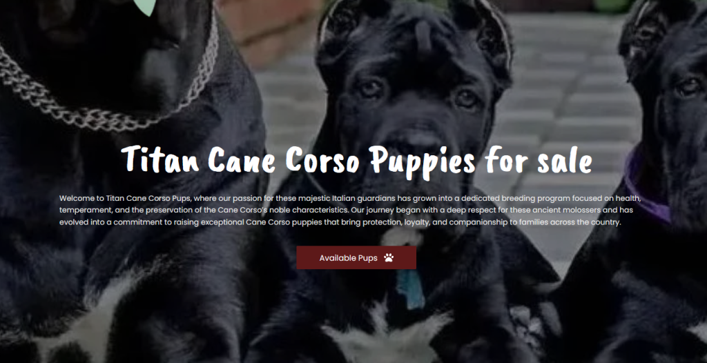 Titan Cane Corso Puppies (fake puppy breeder scam) uses generic keywords and fake reviews. Buyer beware; this is not a real breeder and there are multiple reports of them stealing money.